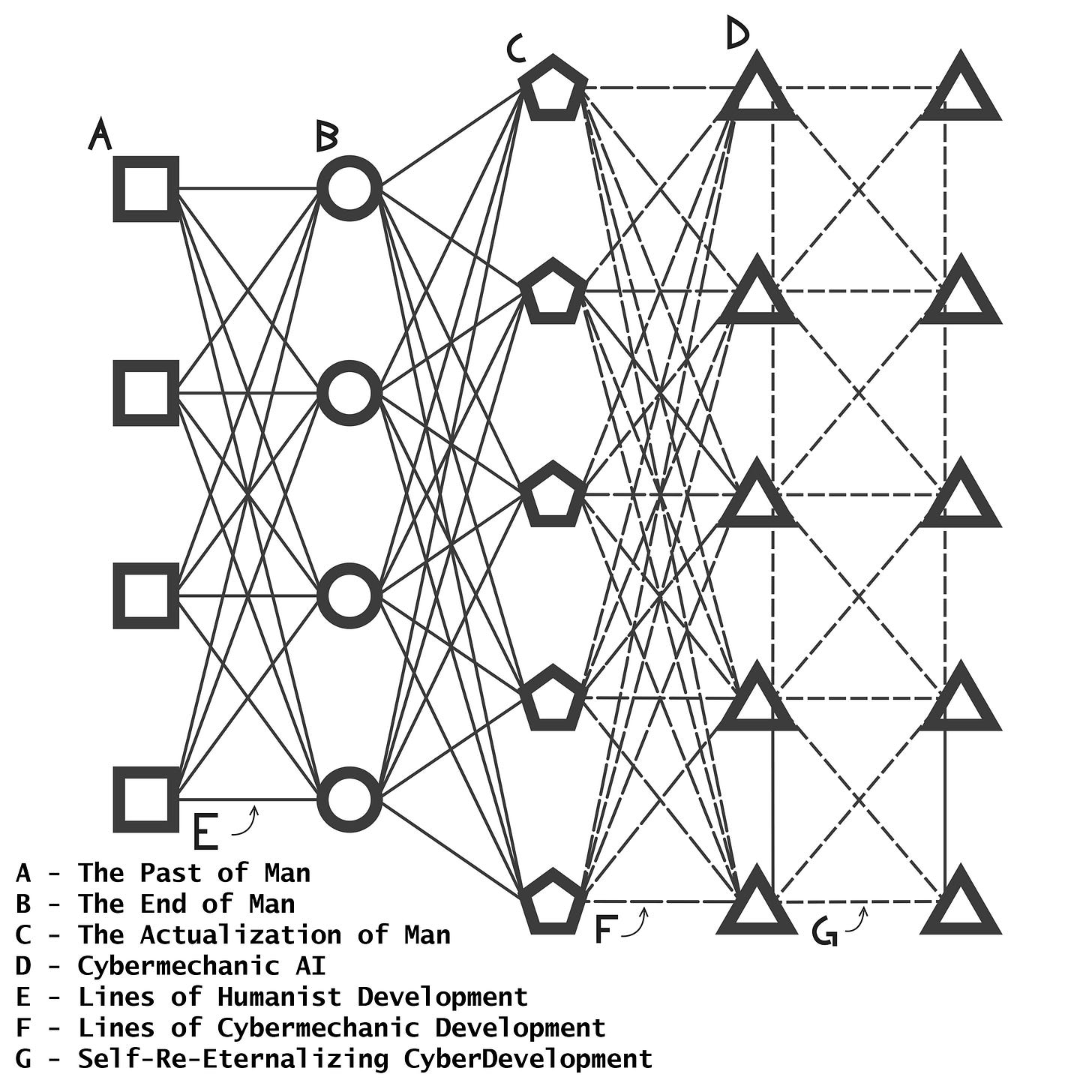 There are two important parts here to pay attention to, the first is that, under future “f(y),” it is comparatively negative (f(y) - f(x) = -997, if you’re interested), but in the end, “f(z)” is greater than f(y) and f(x) (at values of +1304 and +307, respectively). This requires Hamp to make a choice, pick outcome f(z) and be forced to go through some rendition of f(y), or stay at f(x) and lose a +1304 boost. But alas, there is a temporal difference in the experience of pleasure and suffering between biological humanity and cybermechanical humanity; where the pleasure/suffering of biological humans is finite (both in time and space), cybermechanical humanity may feel pleasure/suffering infinitely across time AND space. This may, of course, halt our quest to eliminate suffering and infinitize pleasure, until, that is, we remember that biological humans have the capacity to feel no physical pain (or in some sense a lack of capacity to feel physical pain), a disconnect between the nervous system and the mind. Machinic life too may experience this capacity for an infinitely limited suffering. This is the solution to our problem. A perfect race of humans, but also to some the death of humans. Weep in its beauty and cry at its mercy.